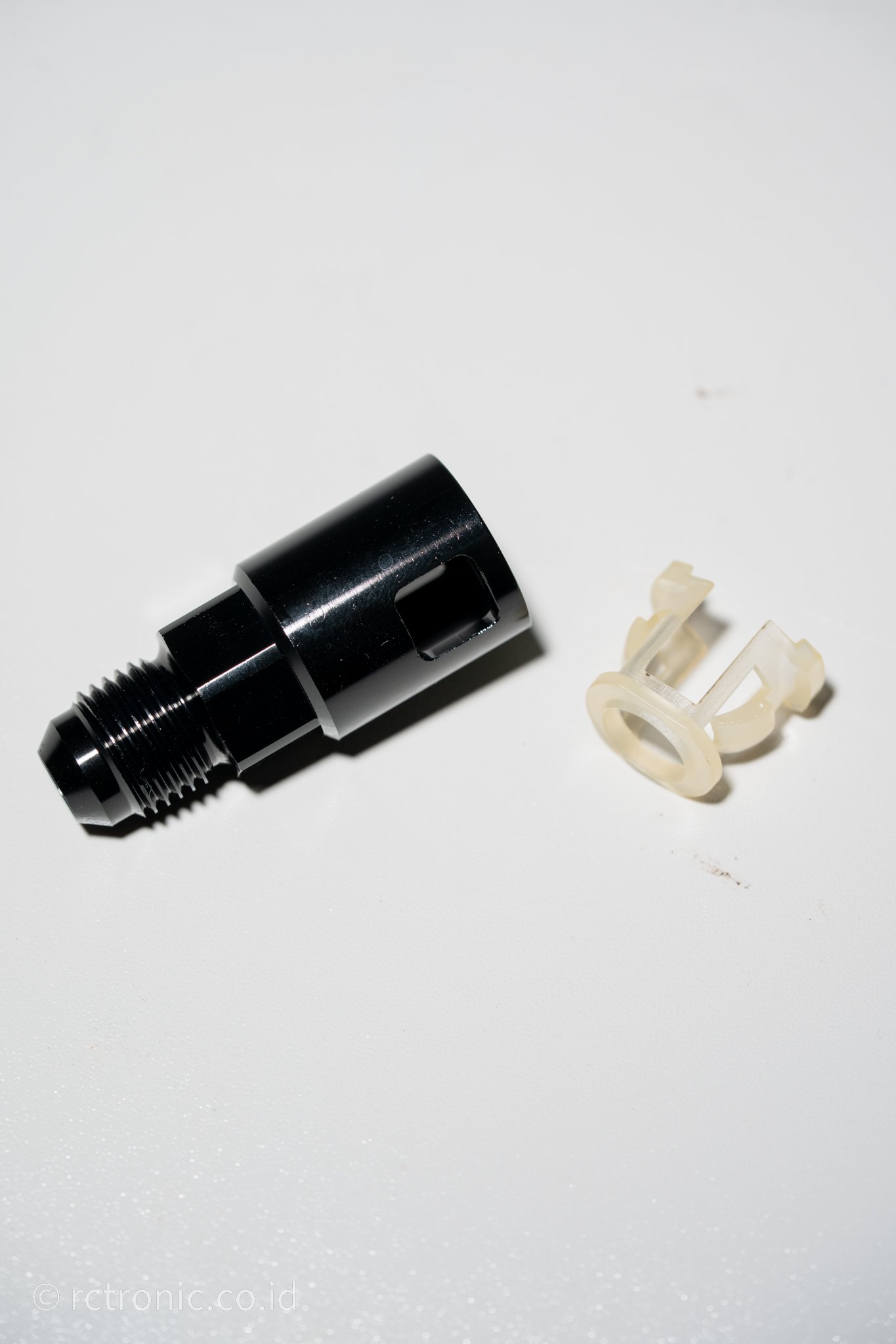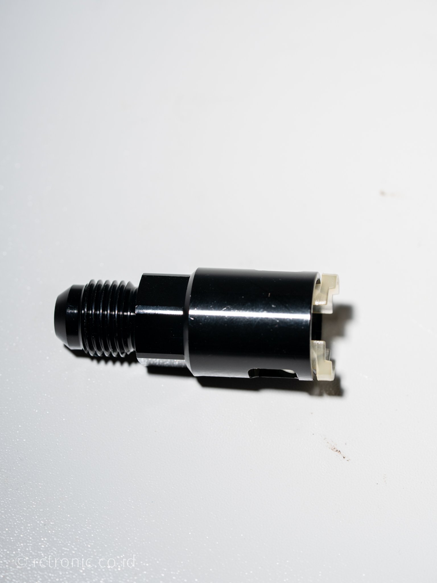 konektor Quick-Connect AN6 male ke Female 3/8″ (10 mm barb). biasa digunakan untuk menghubungkan ujung dari fuel rail ke konektor AN6.